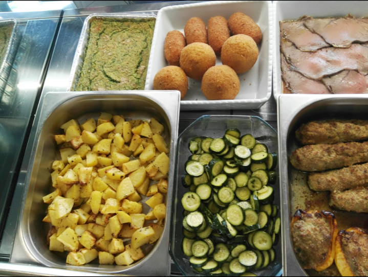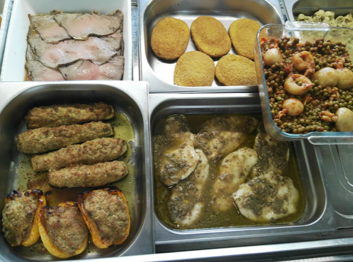 Tortelli al ragù, piatti a base di pesce fresco, lasagne, roastbeef, arancini e supplì, contorni di verdure di stagione e un ricco assortimento di rustici: ogni giorno, sul bancone, piatti sempre diversi che riportano in tavola i sapori della tradizionale cucina casalinga.